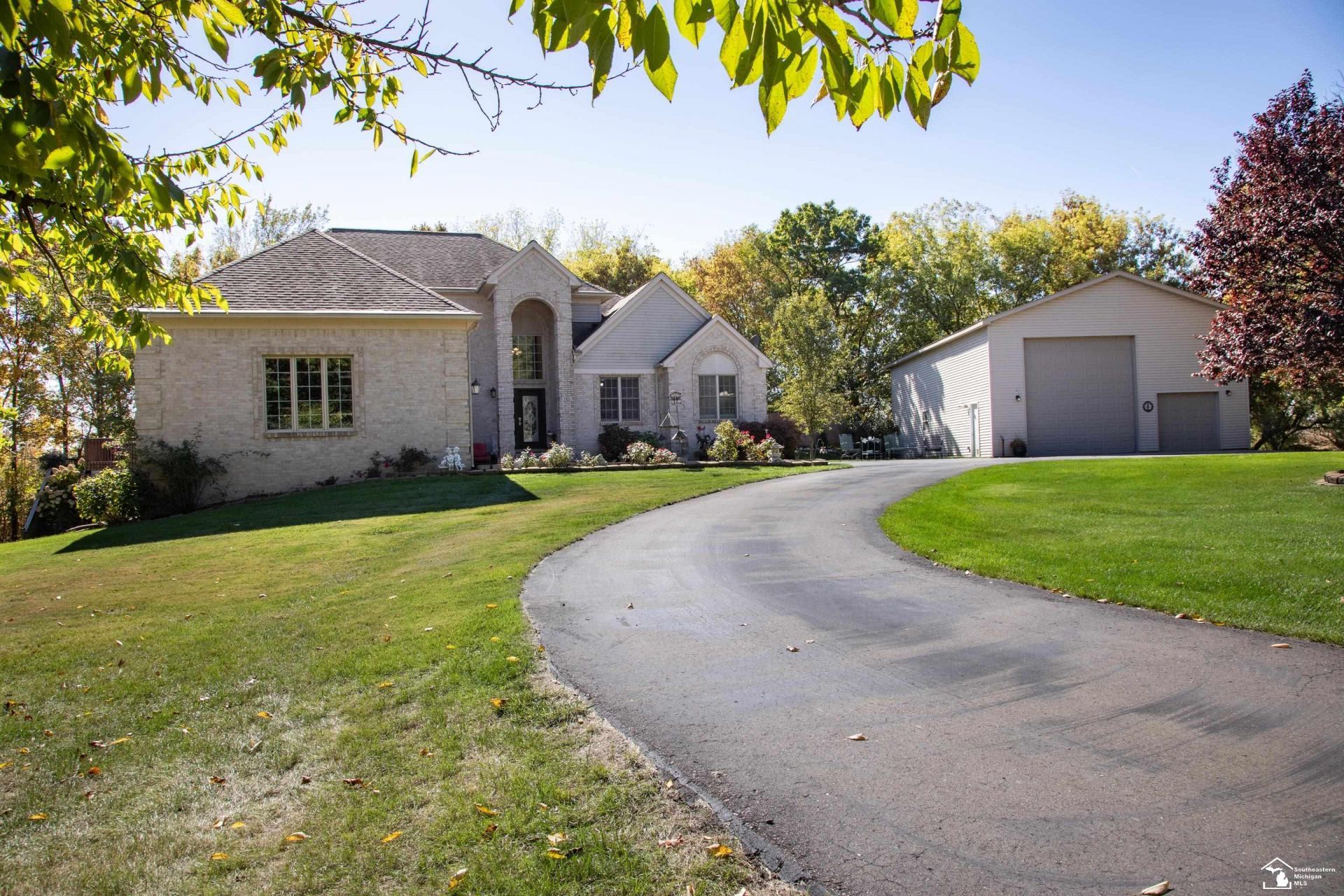 From the moment you enter, the scale and presence of this home set the tone, opening into a dramatic great room with soaring ceilings and a striking fireplace that immediately draws you in and invites you to imagine gatherings both large and intimate. Set on over 2.5 acres in the highly sought-after South Lyon School District, this expansive 5-bedroom, 4.5-bath residence offers more than 4,600 square feet of refined living space designed to balance everyday comfort with a touch of luxury. The chefs kitchen flows naturally from the main living area, featuring granite countertops, abundant cabinetry, and a layout built for both quiet mornings and lively gatherings. Rich wood flooring, detailed wainscoting, recessed lighting, and Pella windows elevate the overall feel, while a private study provides the perfect work-from-home retreat. The primary suite offers a peaceful escape with 9-foot ceilings, dual closets, and an updated bath designed for relaxation. A versatile bonus room above the garage adds flexibility for a media space, guest suite, or playroom, while the finished basement?with half bath and dedicated workout area?extends the living space even further. Efficiency meets peace of mind with a geothermal heating and cooling system, thorough insulation, and a newer water heater. Outside, an elevated 16x16 deck overlooks the expansive property, complete with sprinkler system and a massive 32x48 pole barn featuring 16-foot ceilings and 30-amp hookup?ideal for RV storage, hobbies, or additional workspace. With a 3-car attached garage and thoughtful details throughout, this is a property that lives as impressively as it looks, and literally seconds from the Lyon Oaks Golf Course